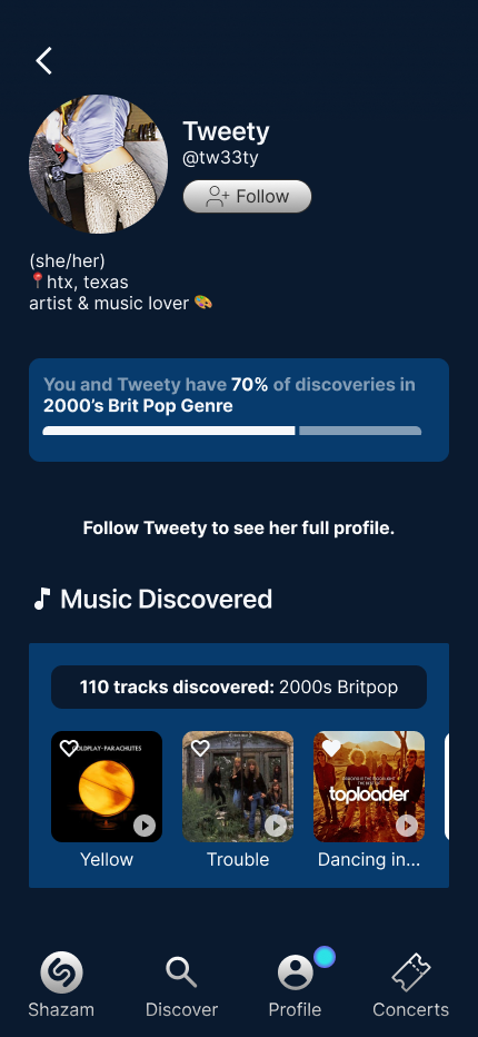 Lightweight profiles help people discover music through others - the same way it happens in real life, without it turning into another social feed.