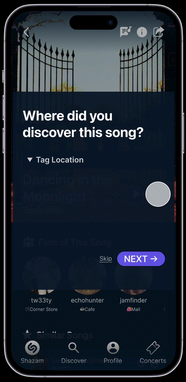 Shazam is used to quickly identify songs, but the experience starts and ends there. While users rely on the app to identify music in the moment, there is little to no support for revisiting those moments.